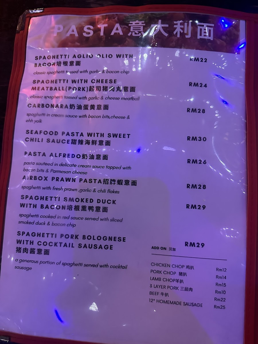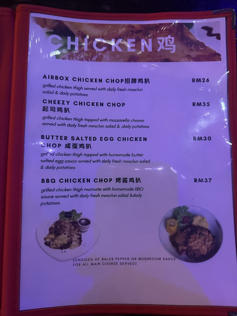 The menu at The Airbox Cafe boasts an impressive selection of dishes that cater to both meat lovers and seafood enthusiasts alike. For those craving a taste of the ocean, the Seafood Combo is a standout choice, featuring generous portions designed to share. With options ranging from juicy chicken satay to fully loaded seafood pastas, you’re guaranteed a feast fit for a gathering. Don’t miss the Butter Salted Egg Chicken Chop, a beautifully crispy delight smothered in savory sauce that's become a fan favorite. Customers rave about the generous portions, noting that meals are sizable enough for sharing – perfect for families or a casual get-together with friends.